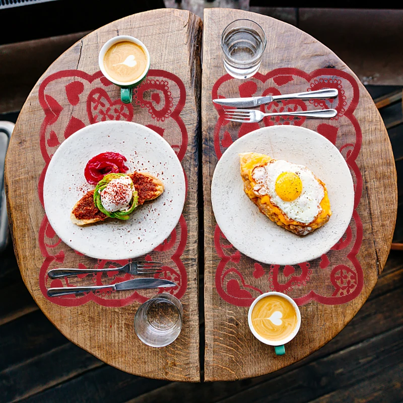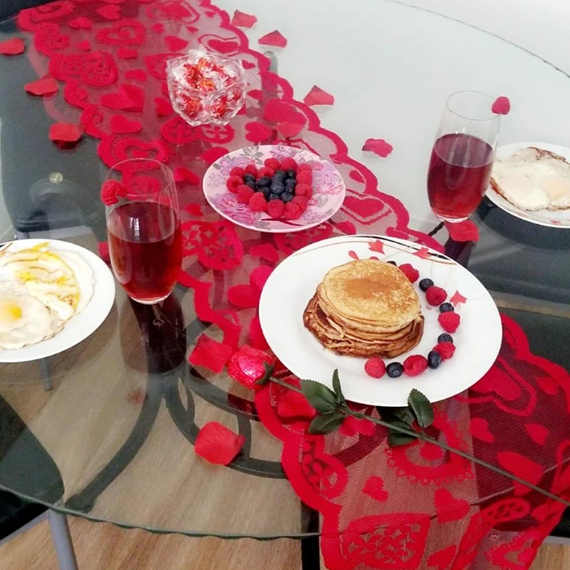 Whether paired with candles, floral arrangements, or dinnerware, the Red Heart Lace Table Runner Placemat adds a festive and romantic flair that impresses your guests and makes your event unforgettable.